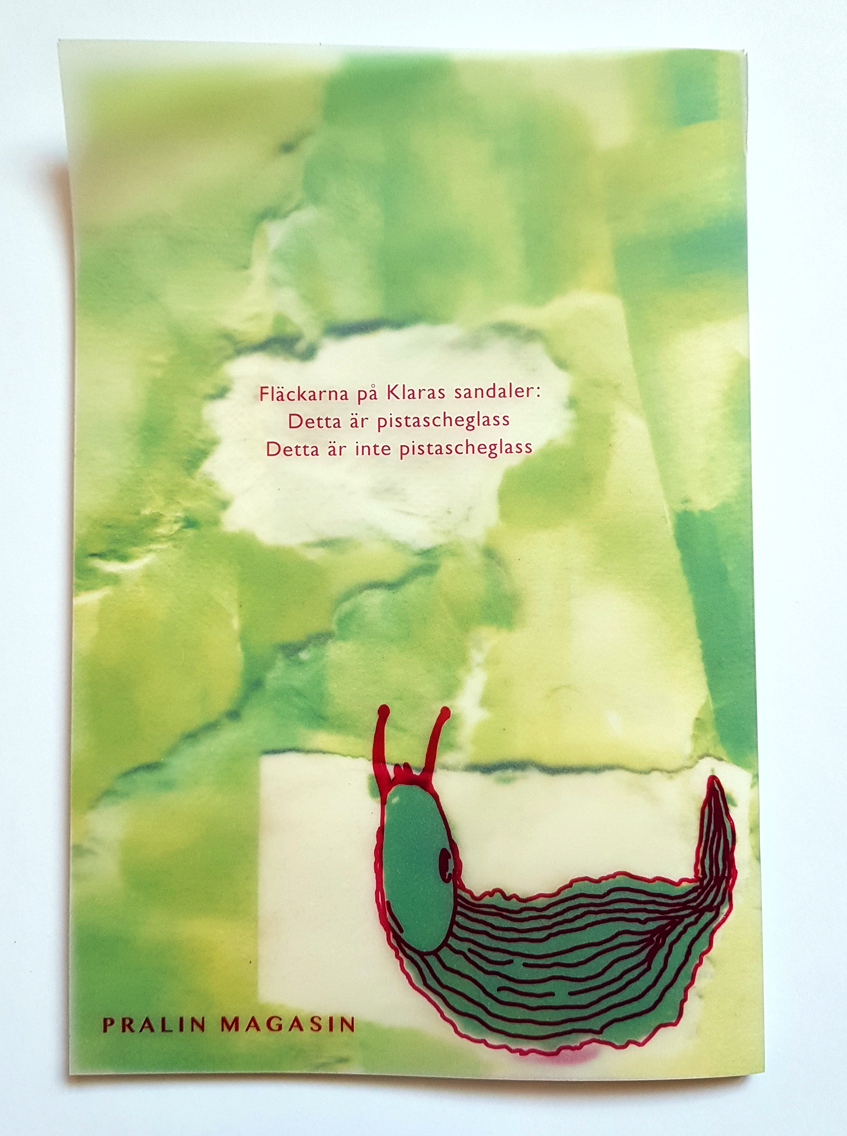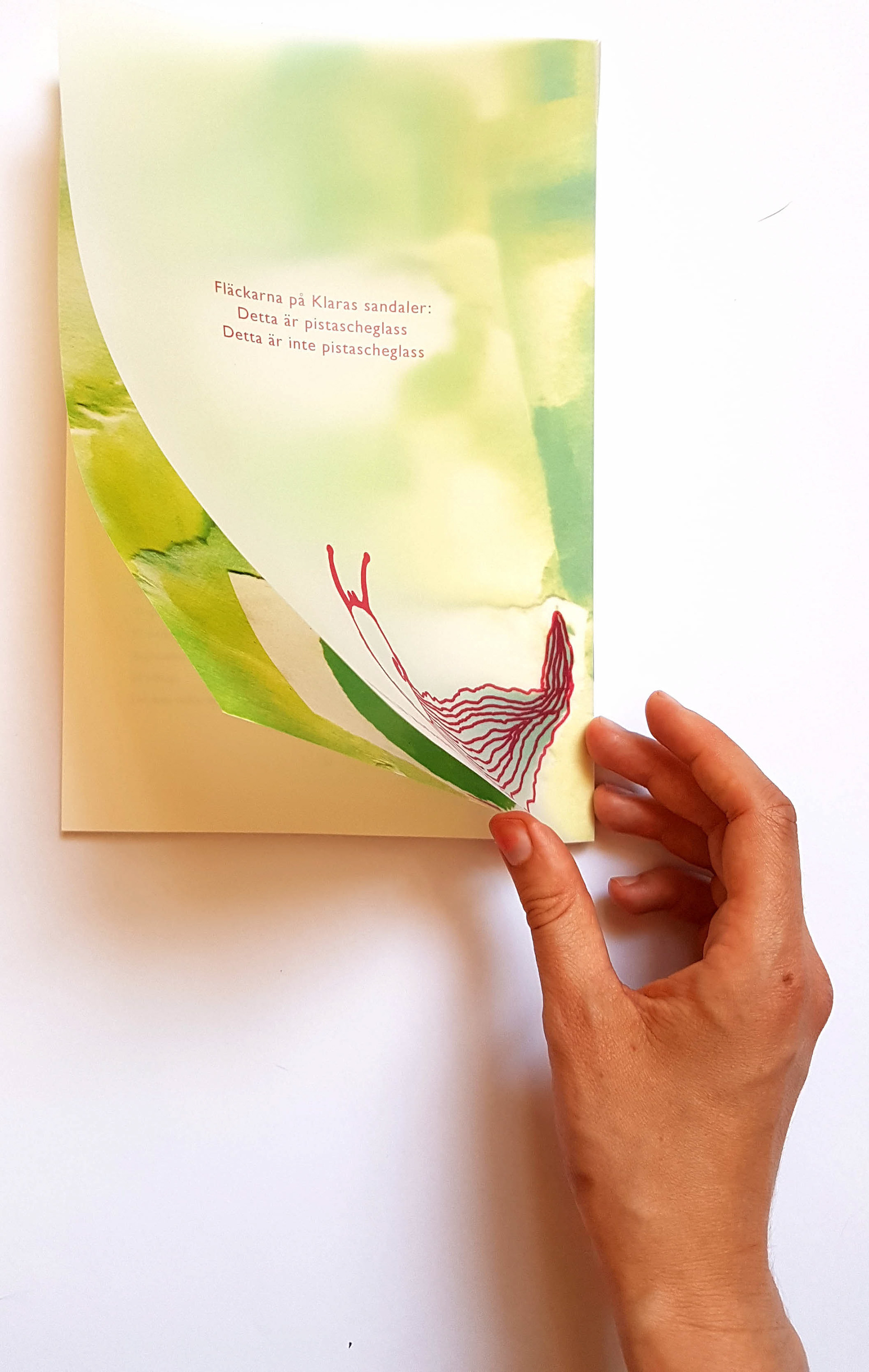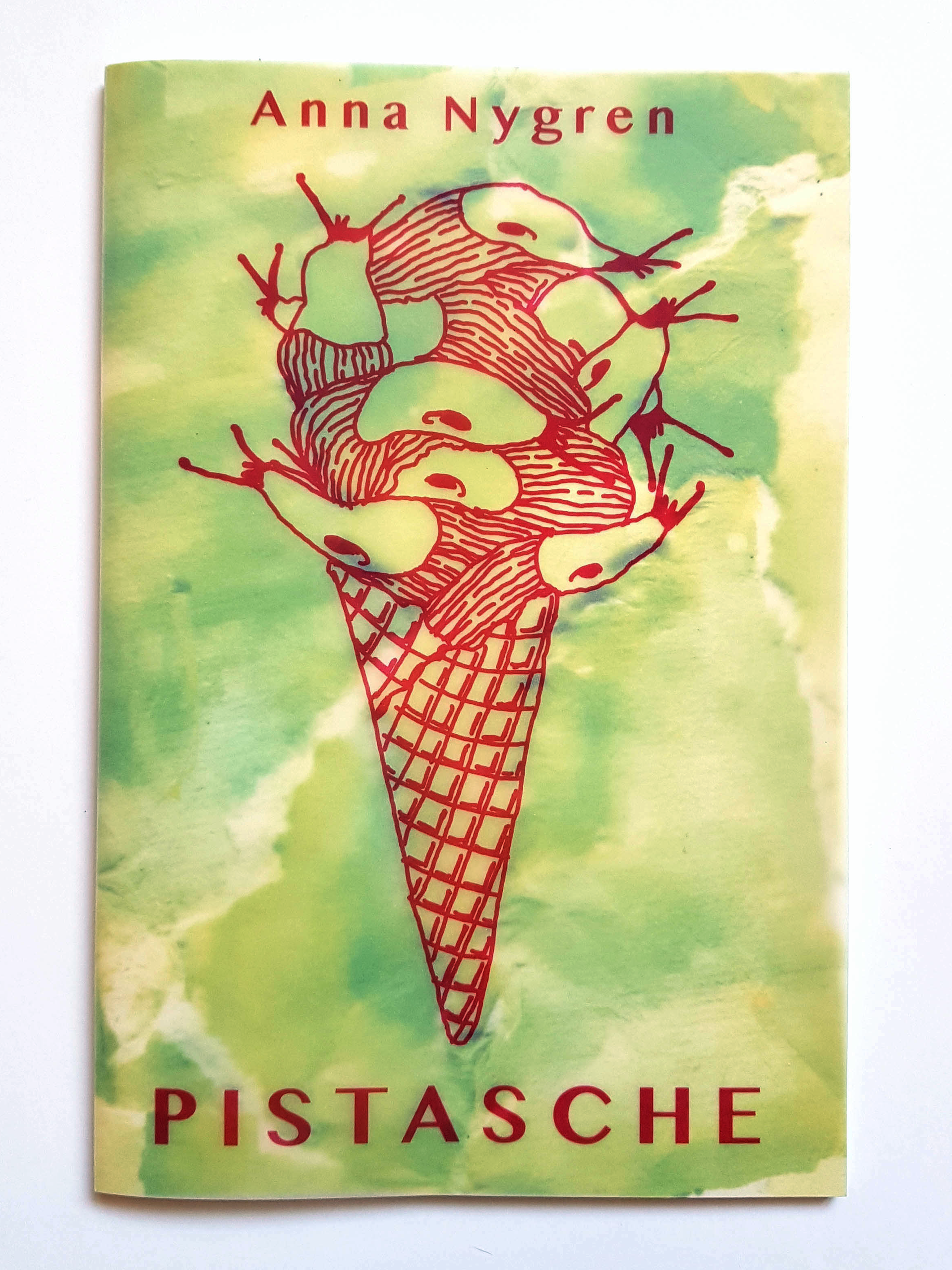 Illustration and cover design for the poetry chap book ‘Pistasche’ by Anna Nygren, published by Pralin Magasin. The book has a double cover with the top layer printed on tracing paper.